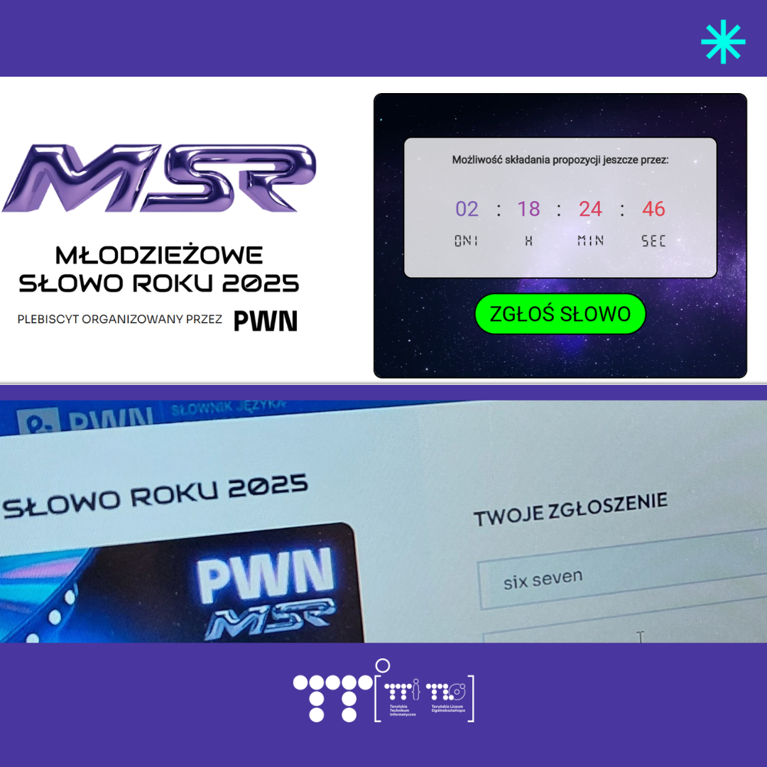 Uczniowie klas pierwszych na jednej z godzin z wychowawcą dokonali wyboru i zgłosili swoją propozycję w kolejnej edycji plebiscytu na Młodzieżowe Słowo Roku 2025. O tym, czy trafi ona do finałowej dwudziestki, dowiemy się 13 listopada. Ty też proponuj!✅ Pierwsze etap głosowania trwa do 5 listopada: https://sjp.pwn.pl/msr