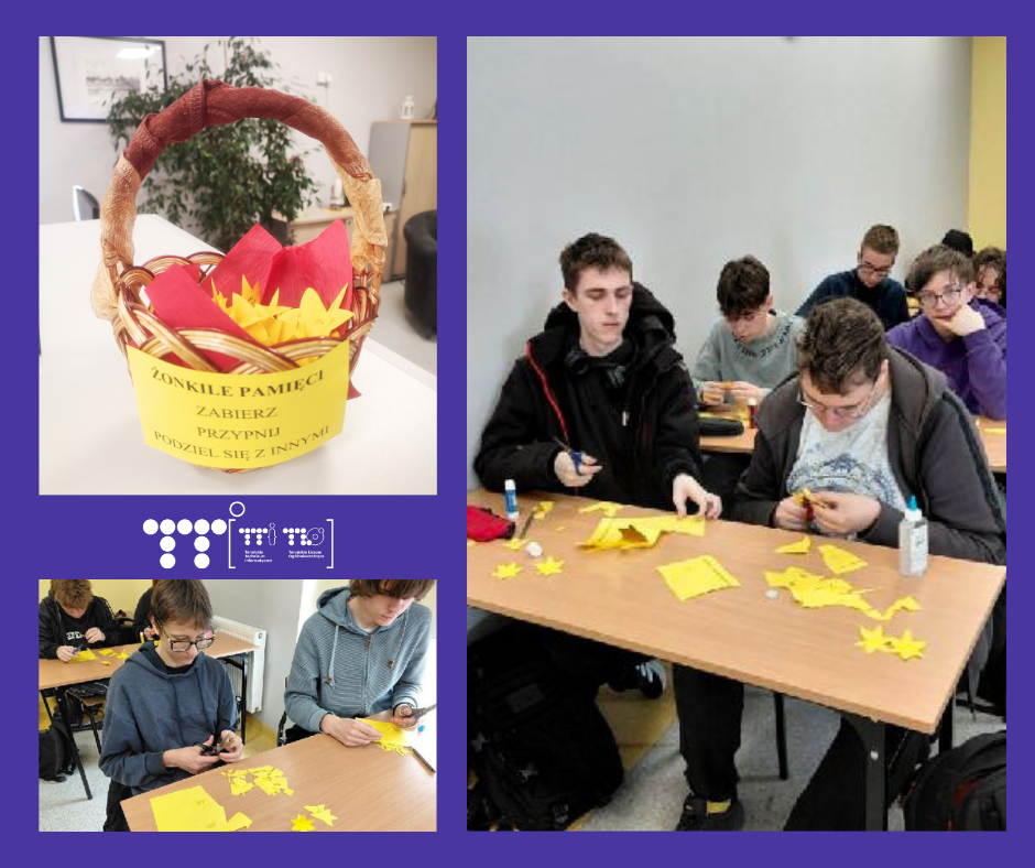 Uczniowie klas pierwszych technikum wykonali papierowe żonkile ✂️🌼 – symbol międzypokoleniowej pamięci 🤝 o ofiarnej tragedii z 19 kwietnia 1943 r.